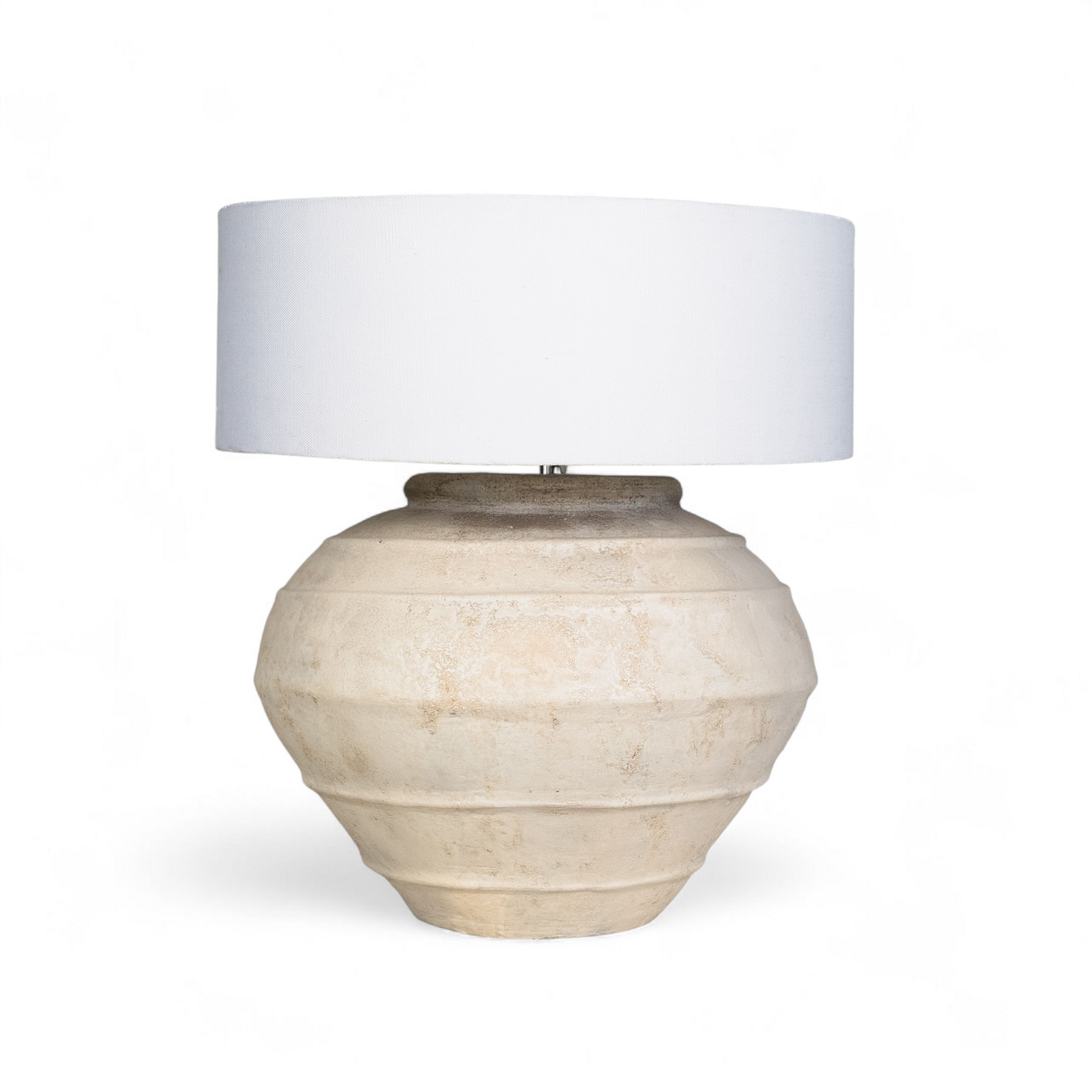 The Tondo Lamp combines sculptural form with organic texture, creating a piece that feels both timeless and grounding. Each lamp is handcrafted from durable GRC (Glass Reinforced Concrete) — a material that mimics the natural look of stone while remaining lightweight and long-lasting.
