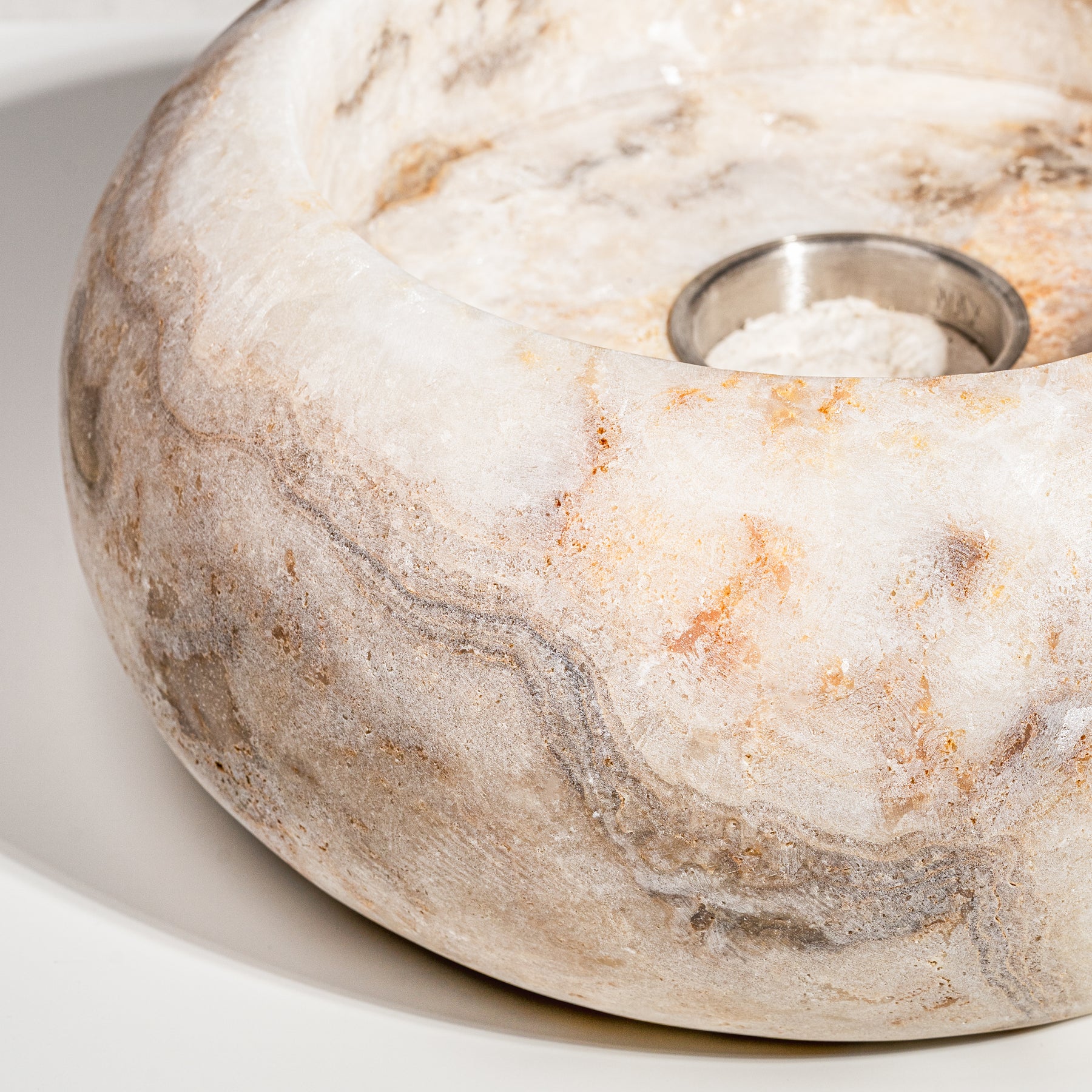 Each stone piece is hand-carved — natural veining and tone variations are part of its unique character.