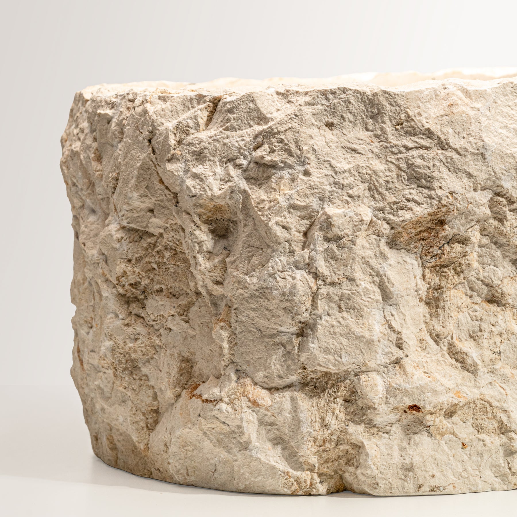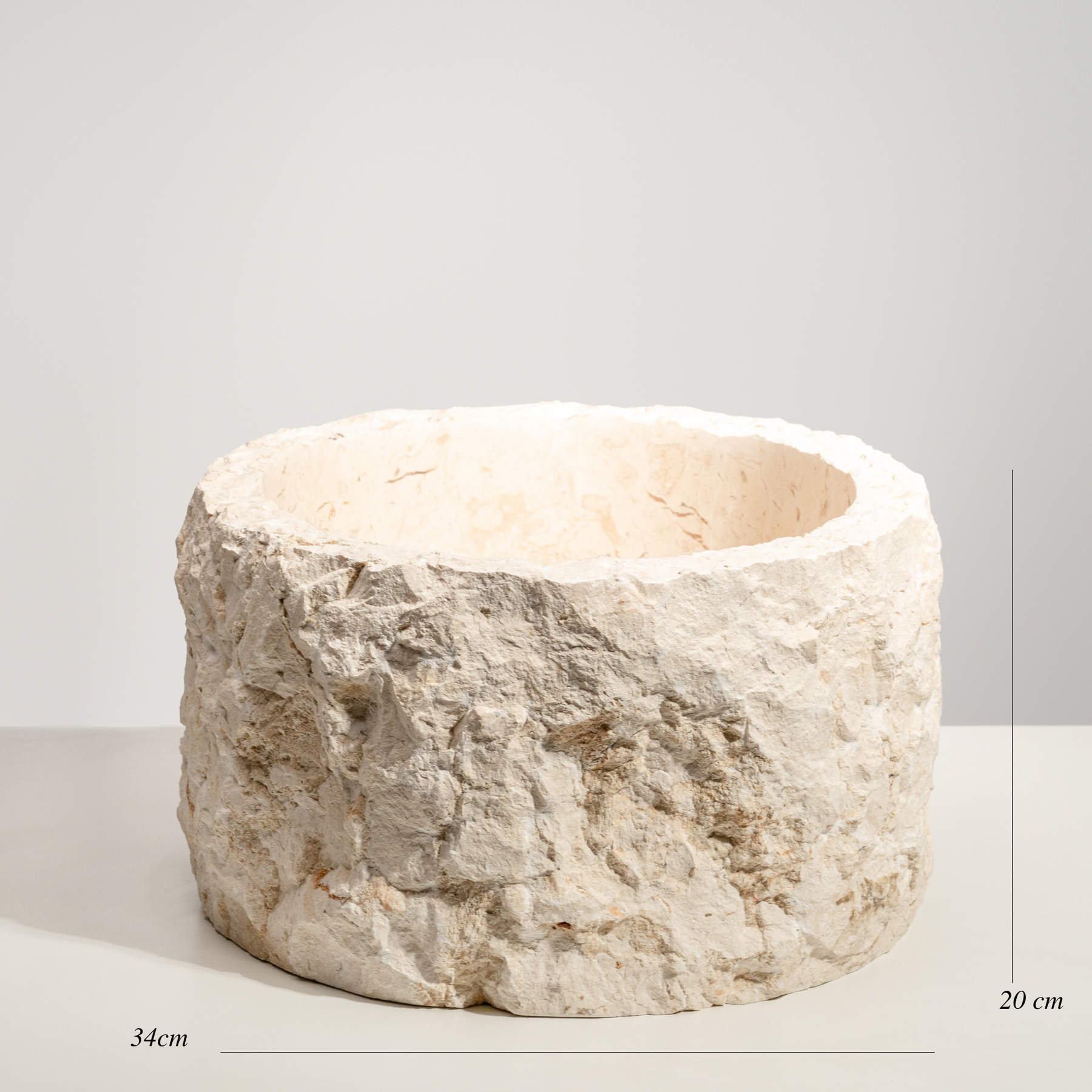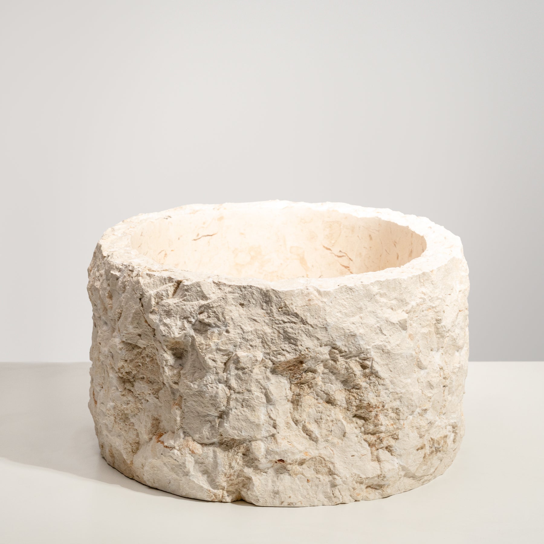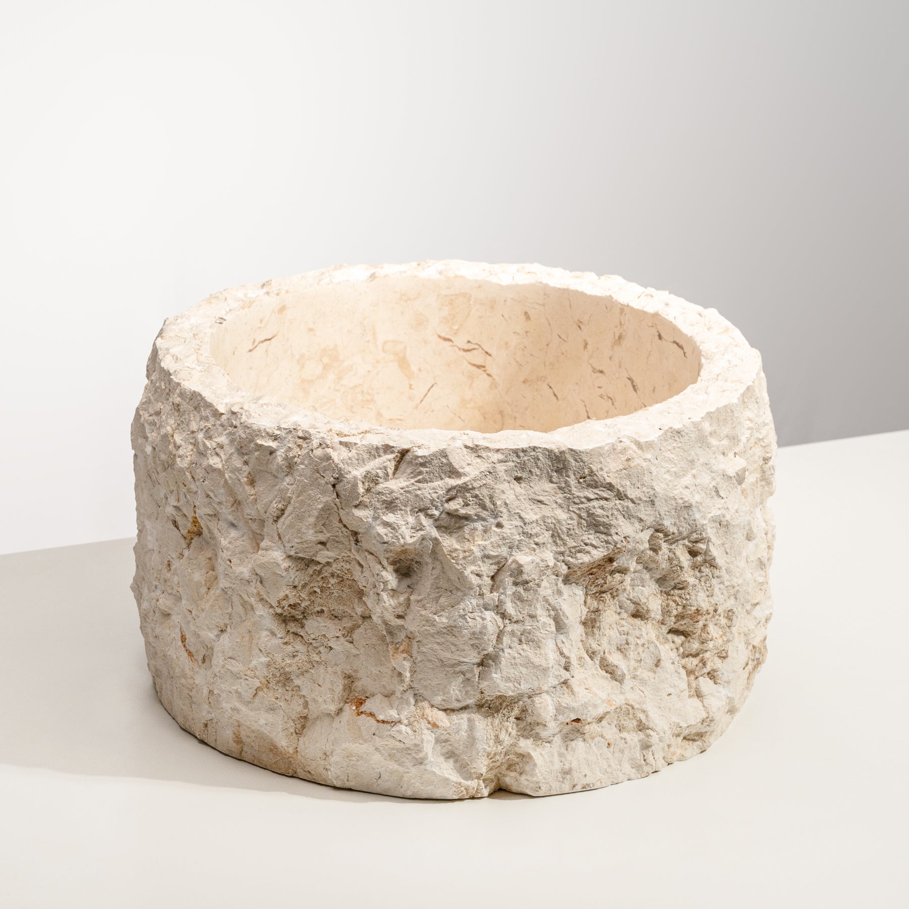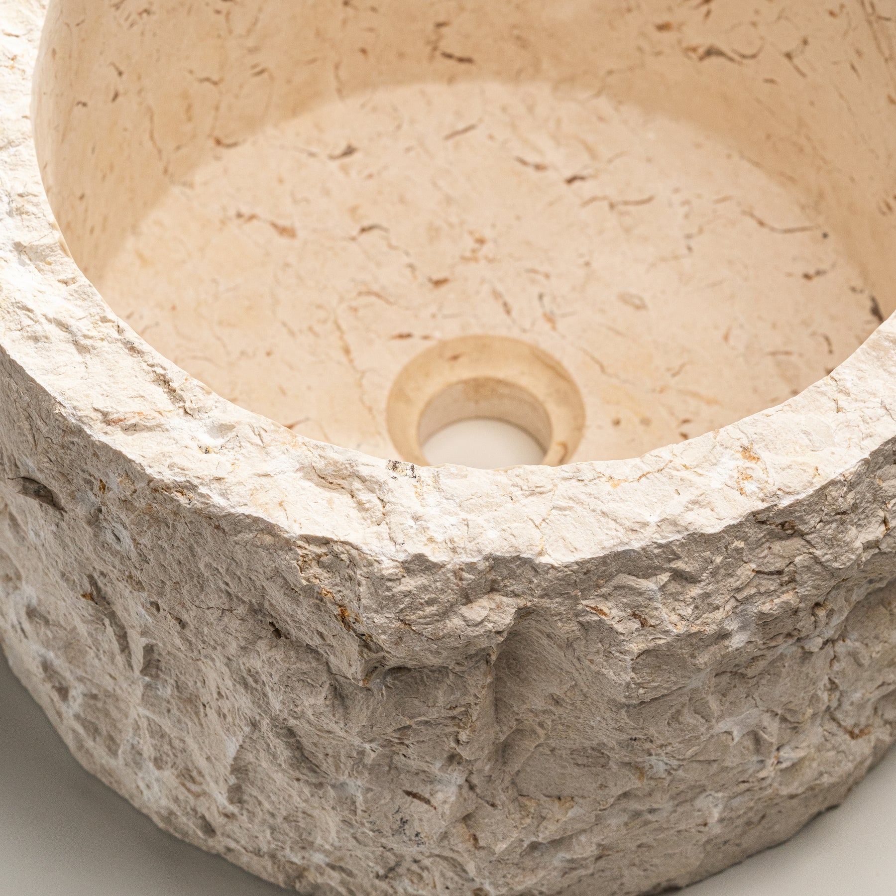 The Terra Marble Basin celebrates the untouched beauty of natural stone. Hand-carved from a single block of marble, its raw exterior contrasts with a smooth inner bowl, capturing the essence of organic craftsmanship. The irregular texture and natural tone make each piece completely unique — no two are ever the same.
